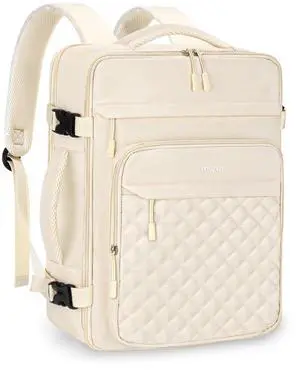 MOSISO Travel Backpack for Women Men, 15-15.6 inch Rhombus Quilted Laptop Backpack Flight Approved with Packing Cubes, 16 inch Carry on Daypack with USB Port for College Work Business, Beige