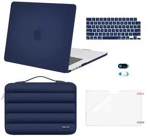 MOSISO Compatible with MacBook Air 15 inch Case 2025 2024 2023 Release M4 A3241 M3 A3114 M2 A2941 Touch ID, Plastic Hard Shell&Puffy Sleeve Bag&Keyboard Cover&Webcam Cover&Screen Film, Navy Blue