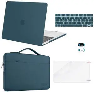 MOSISO Compatible with MacBook Pro 13 inch Case M2 2025, 2024, 2023-2016 A2338 M1 A2251 A2289 A2159 A1989 A1708 A1706, Plastic Hard Case&Bag&Keyboard Skin&Webcam Cover&Screen Protector, Deep Teal