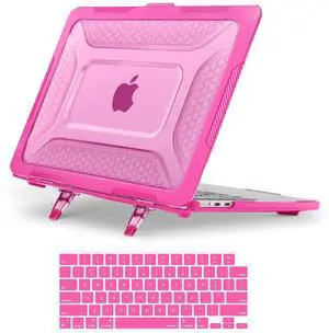 MOSISO Compatible with MacBook Air 13 inch Case 2025 2024 2023 2022 M4 A3240 M3 A3113 M2 A2681,Honeycomb Heavy Duty TPU Bumper Hard Case with Kickstand&Keyboard Skin for MacBook Air 13.6, Rose Red