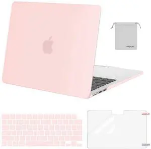 MOSISO Compatible with MacBook Air 13 inch Case 2025 2024 2023 2022 M4 A3240 M3 A3113 M2 A2681, Plastic Hard Shell&Keyboard Cover&Screen Film&Pouch for MacBook Air 13.6 inch Case, Chalk Pink