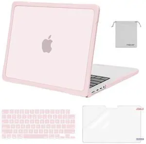 MOSISO Compatible with MacBook Pro 13 inch Case M2 2025-2016 A2338 M1 A2251 A2289 A2159 A1989 A1708 A1706, Anti-Cracking Heavy Duty Plastic TPU Bumper Hard Case&Keyboard Skin&Screen Film, Pink