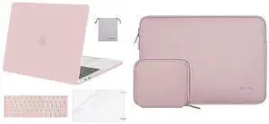 MOSISO Compatible with MacBook Pro 13 inch Case 2016-2020 Release A2338 M1 A2289 A2251 A2159 A1989 A1706 A1708,Plastic Shell&Neoprene Sleeve Bag&Keyboard Skin&Screen Protector&Pouch,Rose Quartz