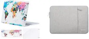 MOSISO Compatible with MacBook Pro 13 inch Case 2016-2020 A2338 M1 A2289 A2251 A2159 A1989 A1706 A1708, Vertical Bag&Pattern Hard Case&Keyboard Skin&Screen Protector, World Map&Gray