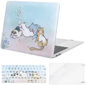 MOSISO Compatible with MacBook Air 13 inch Case 2021 2020 2019 2018 Release A2337 M1 A2179 A1932 Retina Display Touch ID, Plastic Cute Cat Hard Shell & Keyboard Cover & Screen Protector, Blue