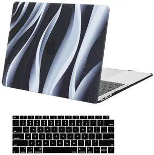MOSISO Compatible with MacBook Air 13 inch Case 2022 2021 2020 2019 2018 Release A2337 M1 A2179 A1932, Protective Plastic Hard Shall&Keyboard Cover for MacBook Air 13.3 inch, Black & Gray Silk Texture