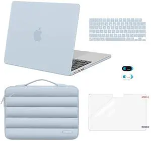 MOSISO Compatible with MacBook Air 13 inch Case 2025 2024 2023 2022 M4 A3240 M3 A3113 M2 A2681, Hard Case&Puffy Bag&Keyboard Cover&Webcam Cover&Screen Film for MacBook Air 13.6 inch Case, Baby Blue