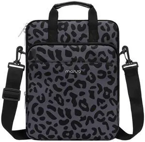 MOSISO 12.9 inch Tablet Sleeve Bag for iPad Pro 13 M4&iPad Air 13 M3 M2,iPad Pro 12.9 M2 M1 6/5th,Surface Laptop Go 12.4,Galaxy Tab S8+/S9+ 12.4, Leopard Grain Tablet Shoulder Bag with 3 Pockets,Black