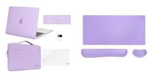 MOSISO Keyboard Mouse Pad Set,Large Gaming Mouse Pad&Wrist Rest Support&Compatible with MacBook Pro 13 inch Case M2 M1 2023-2016, Bag&Keyboard Skin&Webcam Cover&Screen Protector,Light Purple