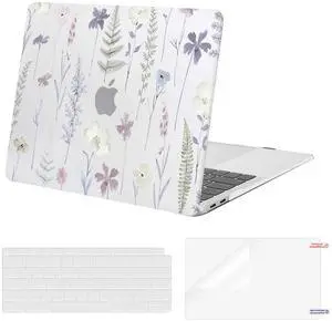 MOSISO Compatible with MacBook Air 13 inch Case 2022 2021 2020 2019 2018 A2337 M1 A2179 A1932, Plastic Meadow Floral Hard Shell&Keyboard Cover&Screen Film for MacBook Air 13.3 inch Case, Transparent