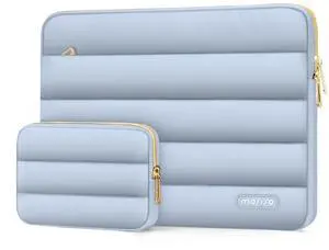 MOSISO 13.3 inch Laptop Case, 13-13.3 inch Puffy Laptop Sleeve Compatible with MacBook Air 13 13.6 M4 M3 M2 M1/Pro 13/Pro 14, HP Dell ASUS Lenovo,Polyester Horizontal Bag with Small Case, Baby Blue