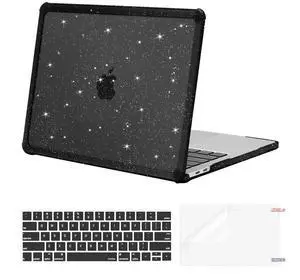 MOSISO Compatible with MacBook Pro 13 inch Case M2 2025-2016 A2338 M1 A2251 A2289 A2159 A1989 A1708 A1706, Anti-Cracking Heavy Duty Glitter TPU Bumper Hard Case&Keyboard Cover&&Screen Film, Black