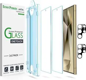 Auto-Alignment OneTouch for Galaxy S24 Ultra 6.8 Screen Protector + Camera Lens Protector Tempered Glass 30 seconds Installation Bubble Free Case Friendly Anti-Scratch [2+2 Pack]