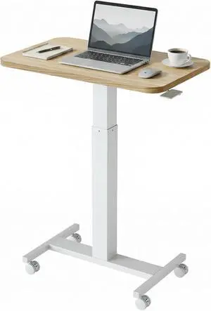 HUANUO Small Rolling Laptop Standing Desk, Height Adjustable Mobile T-Base Desk with Lockable Casters, Portable Sit-Stand Workstation for Bedside & Sofa, Light Walunt