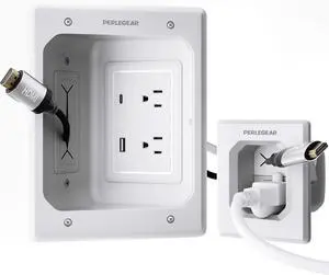 TV in-Wall Cable Management Kit, USB and Typ C Ports Cord Hider for Wall Mount TV with Recessed Power, Includes Drill Templates, Dust Bags, Drywall Saw, Extension Cable