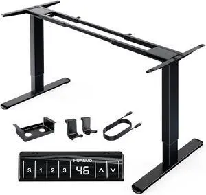 HUANUO Standing Desk Frame with 220lbs Powerful Brushless Motor, Thick T-Shaped Adjustable Desk Legs Made of Automotive-Grade Steel, for Max 75 x 35 Desktop, for Home Office, Black Frame Only