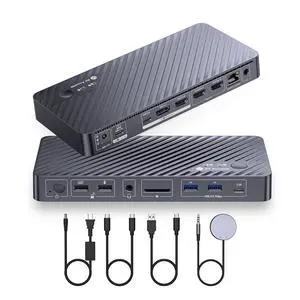 AV Access iDock P10 KVM Docking Station Dual Monitor for Laptop & Desktop, 2 Computers 2 Monitors KVM Switch with Dual HDMI 4K@60Hz, Gigabit Ethernet, EDID, 4x USB-A, 1x USB-C, Laptop Power Supply