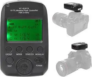 VC-818TX E-TTL Flash, 2.4G Transmitter Maximum Support for 1/8000s High Speed Synchronization Supports 8 Channels 30ID, for Camera