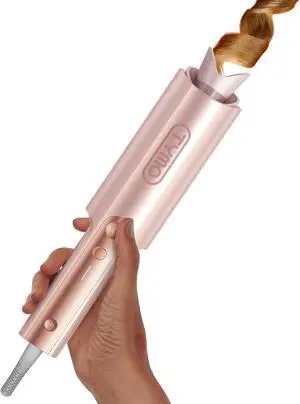 Upgraded Automatic Rotating Curling Iron - TYMO CurlPro Plus Long Barrel Curling Wand for Long Hair, Ceramic Hair Curler for Women, Anti-Scald, 600M Ionic, Dual Voltage, Gold Blush, 1 1/4 Inch