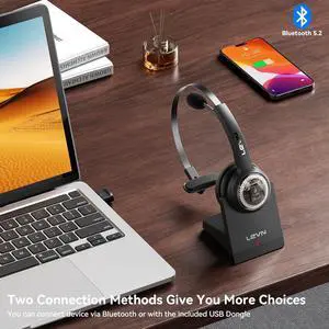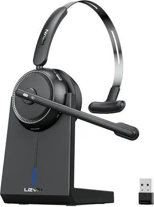 LEVN Wireless Headset with Mic for Work, Wireless Headset (Charging Base, Noise Cancelling & Mute Button), Long Battery Life, Bluetooth Headsets for Home/Office/Call Center/Laptop/Teams/Zoom, Black