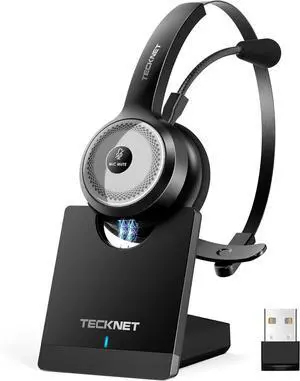TECKNET Wireless Headset for Work, 40Hrs Worktime AI Noise Cancelling Computer Headphones with Charging Base, Bluetooth Headset with Mic & USB Dongle for PC/Laptop/Call Center