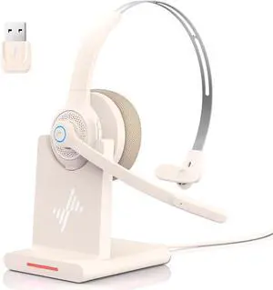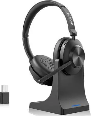 Wireless Headset with Mic for Work, Wireless Headset with Microphone (Noise Cancelling & Mute Button, USB Dongle & Charging Base), Bluetooth Headphones for Home/Office/Computer/Laptop/Phone/Teams/Zoom