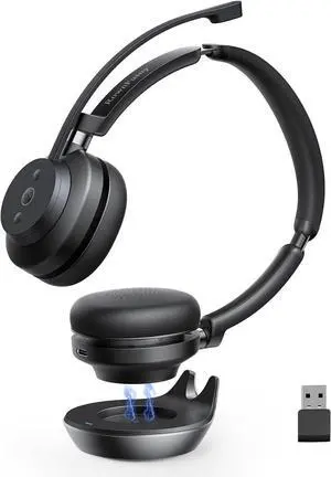Wireless Headset with Mic for Work, Wireless Headset with Microphone (Noise Cancelling), Smart Mult-Func Dock, 65H Worktime&Fast Charge Bluetooth Headphones for Work/PC/Computer/Call Center/Teams/Zoom