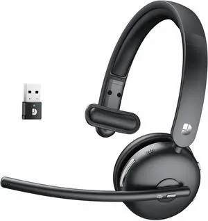 Bluetooth Wireless Headset with Mic for Work, Clear Call, Bluetooth 5.2, Mic Mute Function, USB Dongle, Applicable to PC, Laptop, Phone, Android, Zoom, Office