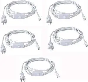 10ft T5 T8 Power Cord with Switch,3 Prong Female End,US Plug T5 T8 Extension Cord,Linkable Lamp Connecting Wire for Garage,Warehouse,Shop,Commercial Lighting,Pack of 5
