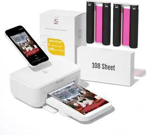 HPRT Photo Printer 4x6 with 108 Sheet Photo Paper& 2 Ribbon, Instant Picture Printer for iPhone, Smartphone, Thermal Dye Sublimation, WI-Fi Connnecting, Home Use, White