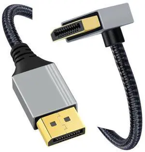 Up Angled DisplayPort DP to DP Cable 4K 60hz Cable Silver Sleeve Ultra-HD UHD 90 Degree for Desktop Laptop Monitor Graphics Card (100cm)