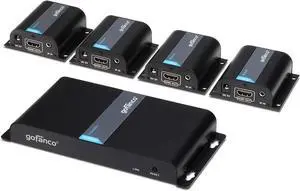 gofanco 1080p 1x4 4 Port HDMI Extender Splitter Over CAT5e/CAT6/CAT7 Ethernet Cable IR Extension, Up to 40m (130ft) at 1080p 60Hz, 1 in 4 Out (HDMIExt4P)