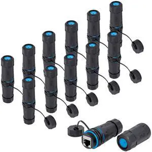 Shielded Waterproof RJ45 Connector, Female to Female, Panel Mount, 8P8C,CAT 6A, CAT 5, CAT 5E, M23 IP67 Ethernet LAN Cable Coupler Outdoor Adapter Weatherproof Connection (12-Pack)