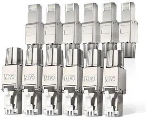 Cat7 Cat6A RJ45 Connector 12-Pack, Tool-Free Zinc Alloy Shielded Ethernet Termination Plugs for Cat7 up to 23AWG Solid Bulk S/FTP Ethernet Cable