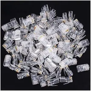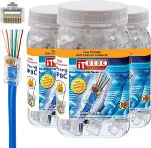 ITBEBE 300 Pieces - Gold Plated RJ45 Cat5, Cat5e Pass Through Connectors - 3 Prong 3u Pass Through 8P8C UTP Jack Ends