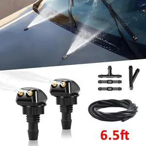 2Pcs Front Windshield Washer Nozzle Wiper Water Spray Jet + 6.5ft Hose Connector