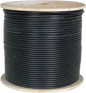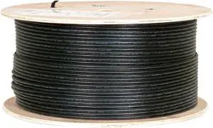 Vertical Cable Cat6, Overall Shielded, UV Jacket, Outdoor, CMX, Messenger, 1000ft, Black, Bulk Ethernet Cable, Wooden Spool