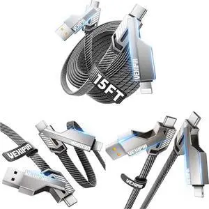 4-in-1 Flat Nylon Braided USB C Cable (3FT+5FT+15FT), 3 Pack 60W Cable Bundle