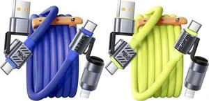 4-in-1 5FT 240W Silicone USB C Cable (Blue) with 5FT 240W Silicone USB C Cable (Green) Bundle