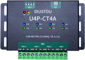 USB to 4-Channel 485 Serial Module CH344Q SP3485 Chip 480Mbps USB Interface Supports 485 Communication at 3M baud Rate Metal case with Isolation Multiple Protection