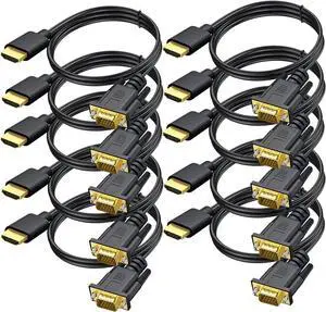 HDMI to VGA Cable 6 Ft, 10-Pack Gold-Plated Computer HDMI to VGA Monitor Cord Adapter Male to Male for Computer, Desktop, Laptop, PC, Monitor, Projector, HDTV (NOT Bidirectional)-Black