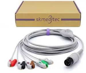 11FT 5 Lead Pinch AHA Cable Compatible with AAMI and Most Monitors, Cord with 6 Pins Connector, 1kRES