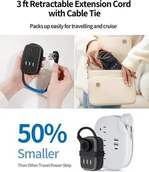 2 Pack USB C Travel Power Strip, 3 ft Wrapped Around Extension Cord with 2 Outlets 3 USB(1 USB C), Ultra Flat Plug, Cruise Approved, Compact Size for Travel and Home Office Hotel, Travel Essentials