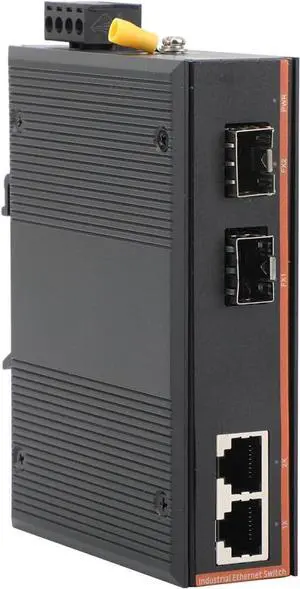Industrial Network Switch Gigabit Ethernet Fiber Optic Converter - 2 SFP to 2 RJ45, 10/100/1000M, IP40, Din Rail Mount