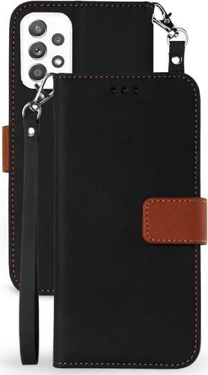 Black/Brown Wallet Case Card ID Slot Cover Wrist Strap for Samsung Galaxy A72 5G