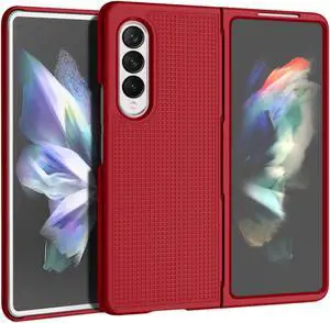 Red Grid Protector Case Slim Hard Shell Cover for Samsung Galaxy Z Fold 3 5G