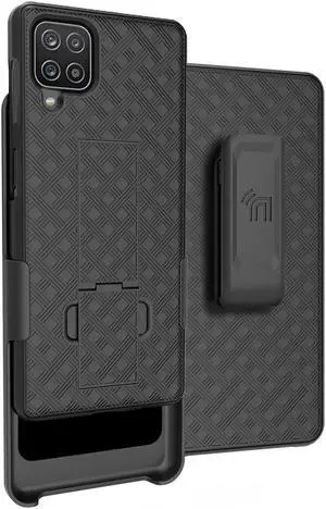Black Rugged Grip Case with Ring Stand and Belt Clip for Samsung Galaxy A12 5G
