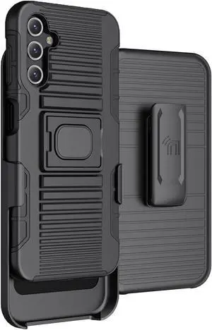 Black Rugged Case Stand and Belt Clip Holster for Samsung Galaxy A14 5G Phone