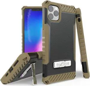 Brown Rugged Tri-Shield Case Cover Kickstand Wrist Strap for Apple iPhone 11 Pro