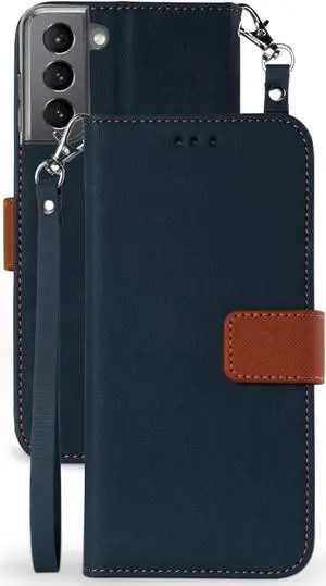 Navy/Brown Wallet Case Credit Card Slot Lanyard for Samsung Galaxy S21 Plus 5G